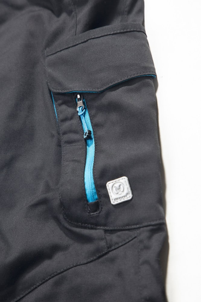 • predné průhmatové vrecká, zadné vrecká kryté pätkou, bočné multifunkčné zdvojené vrecko