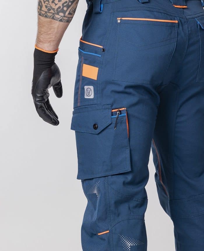 • oblasť kolien je zosilnená odolným materiálom Oxford s vodoodpudivou úpravou, vrecko na nákolenníky umožňuje použitie výstuhy