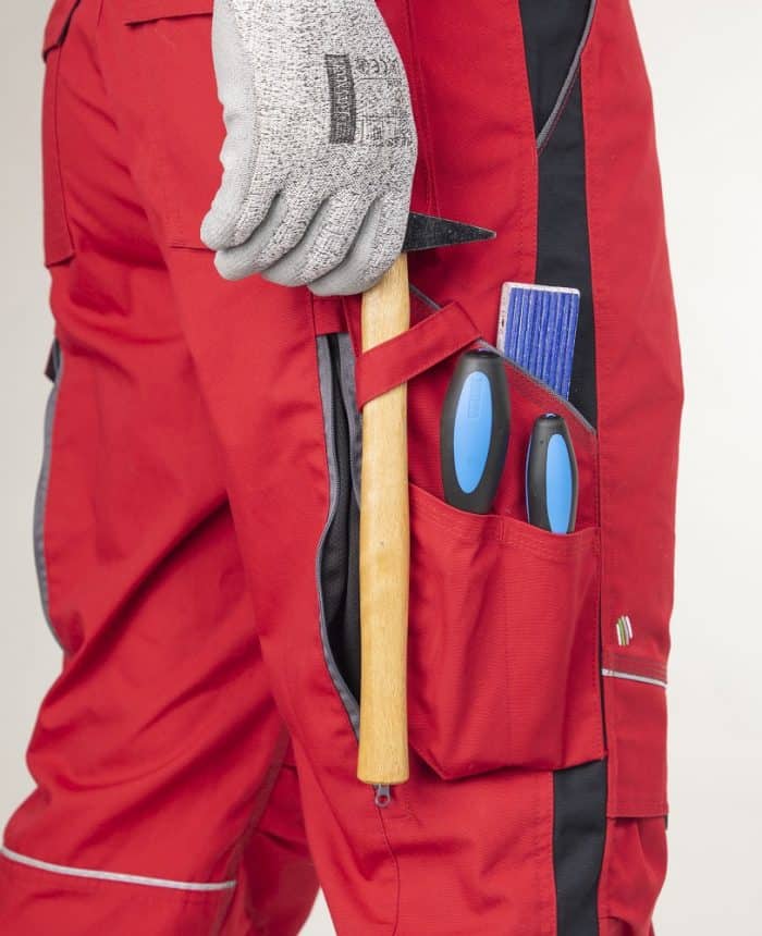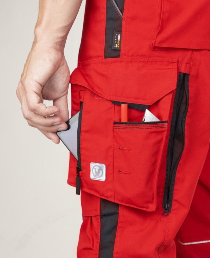 Nohavice s náprsenkou ARDON®URBAN+ červeno-čierne predĺžené