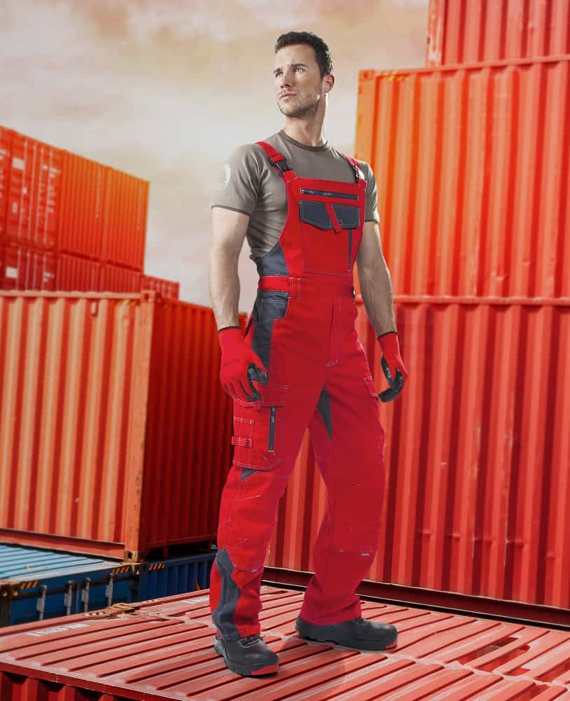 Nohavice s náprsenkou ARDON®VIION 03 červeno-sivé, skrátené